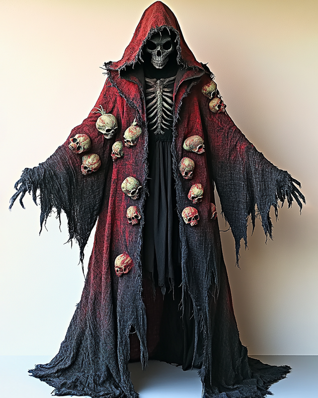 Halloween Themed 3D Skull Embroidered Gradient Cape 9452