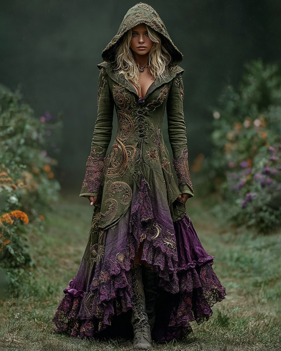 Star and Moon Theme Gradient Embroidery Lace Ruffle Hooded Dress f8c7