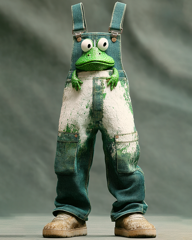 Men's Spring/Summer Color-Blocking Playful Frog Embroidered Overalls 5558