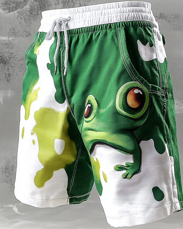 Men's Spring/Summer Color-Blocking Frog Embroidered Shorts 9312