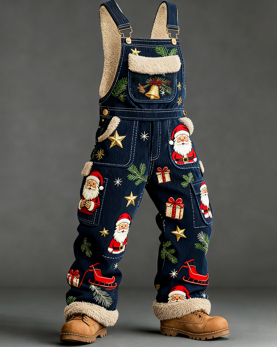 Men's Christmas-Themed Embroidered Corduroy Overalls 8893