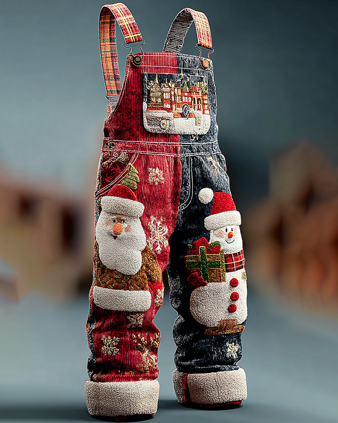 Men's Christmas-Themed Contrast-Color Embroidered Overalls 9406