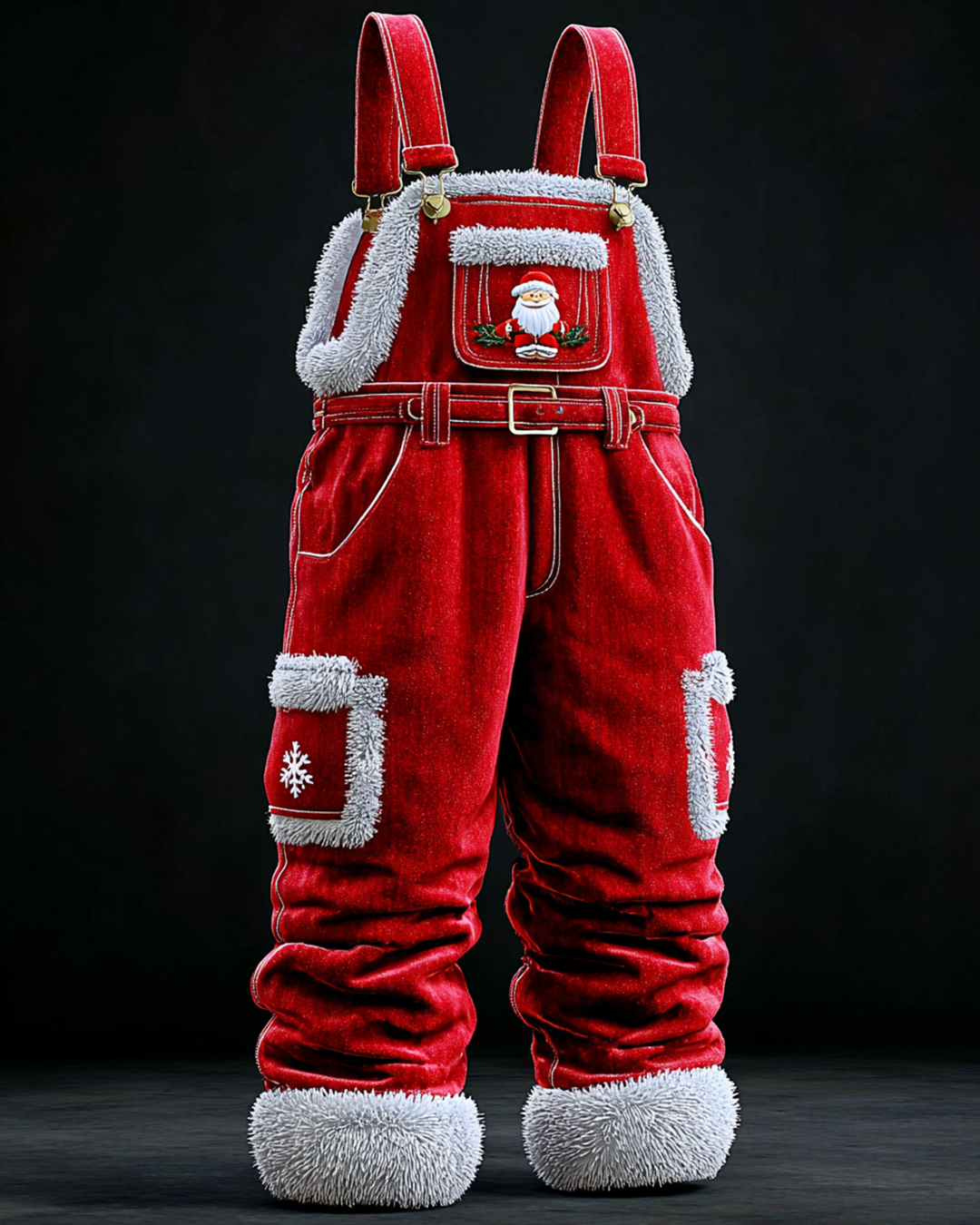 Men's Christmas-Themed Contrast-Color Santa Claus Embroidered Overalls 4489