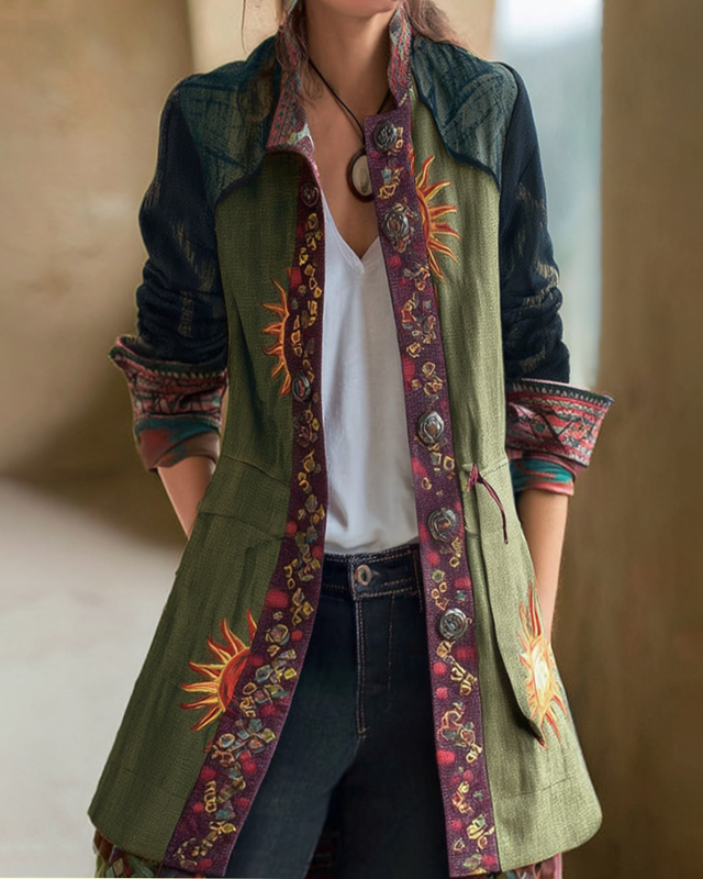 Western Vintage Flower and Moon Cardigan Coat a9c3