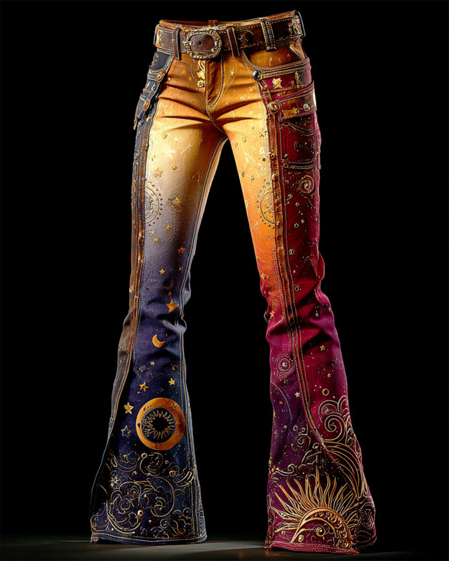 Women's autumn and winter star and moon embroidered contrast color stitching flared pants 51ac