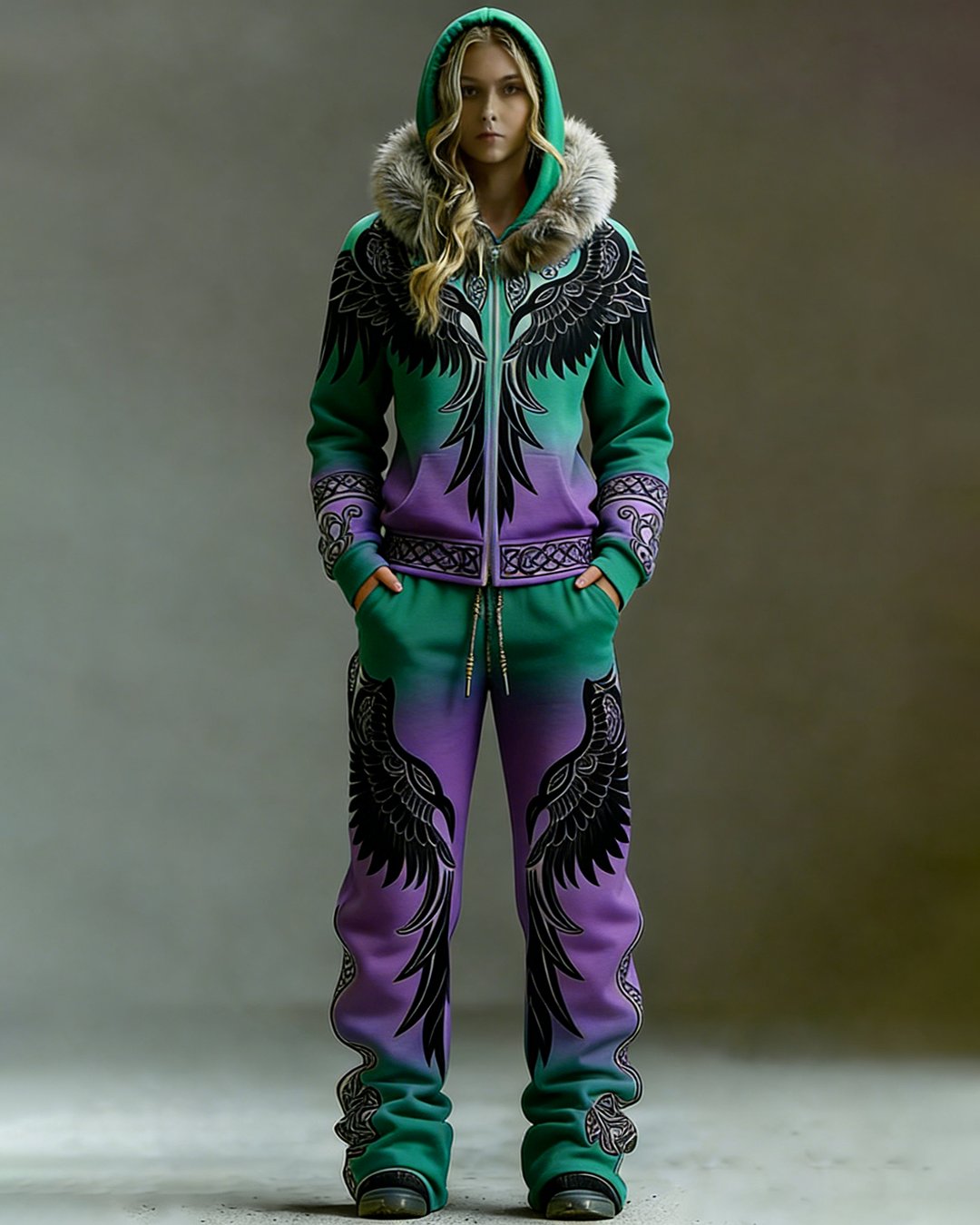 Women's Winter Warmth Faux Fur Hoodie and Pants Two-Piece Set 1538