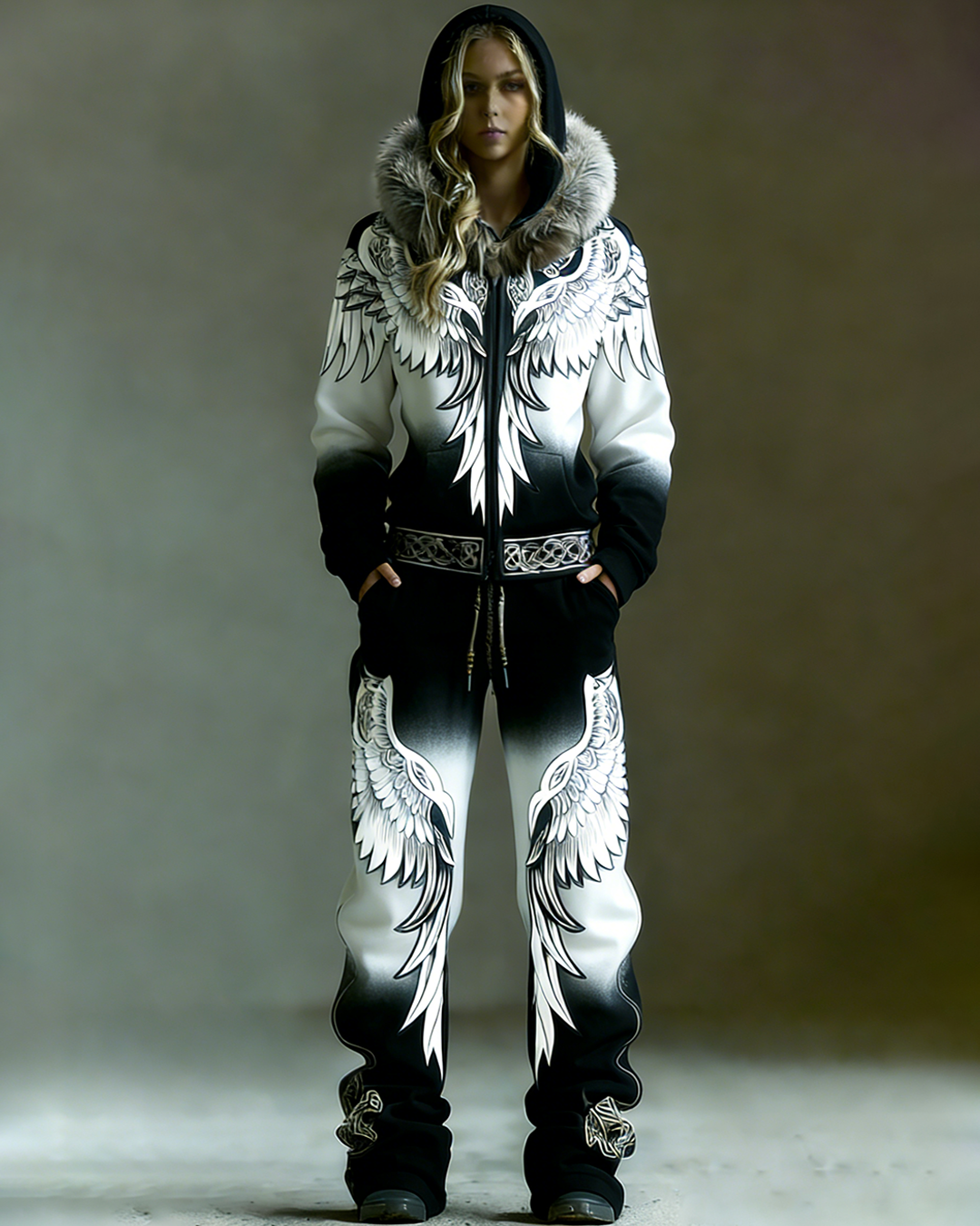 Women's Winter Warmth Faux Fur Hoodie and Pants Two-Piece Set 7494
