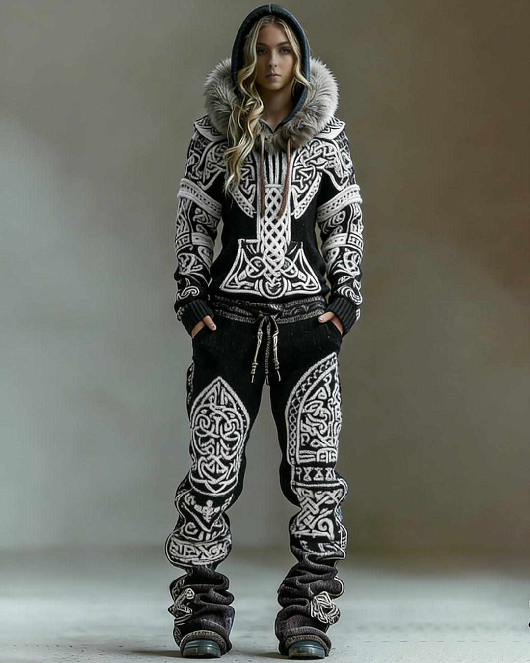 Women's Winter Warmth Faux Fur Hoodie and Pants Two-Piece Set 8920