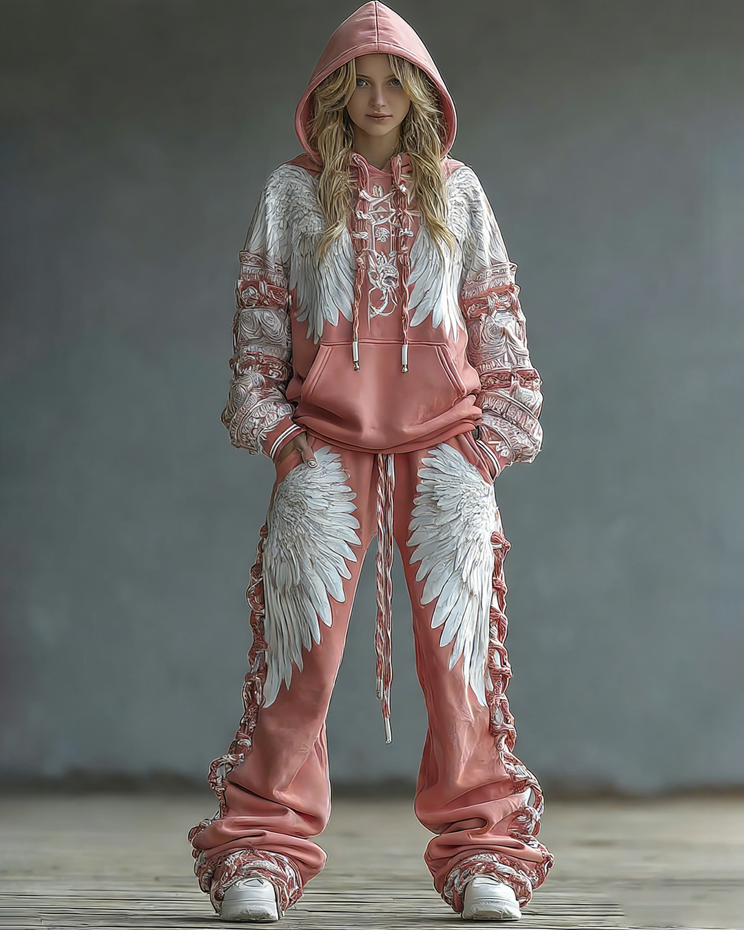 Women's Spring Viking Embroidered Hooded Sweatshirt and Pants Two-Piece Set 8975